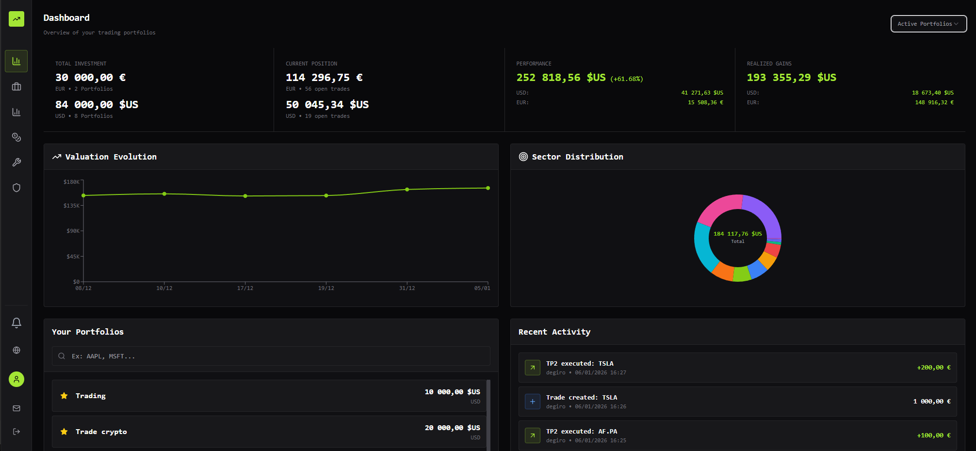 Ditch the spreadsheet chaos. Track your Swing positions, analyze exposure, and manage multiple portfolios from a unified dashboard.